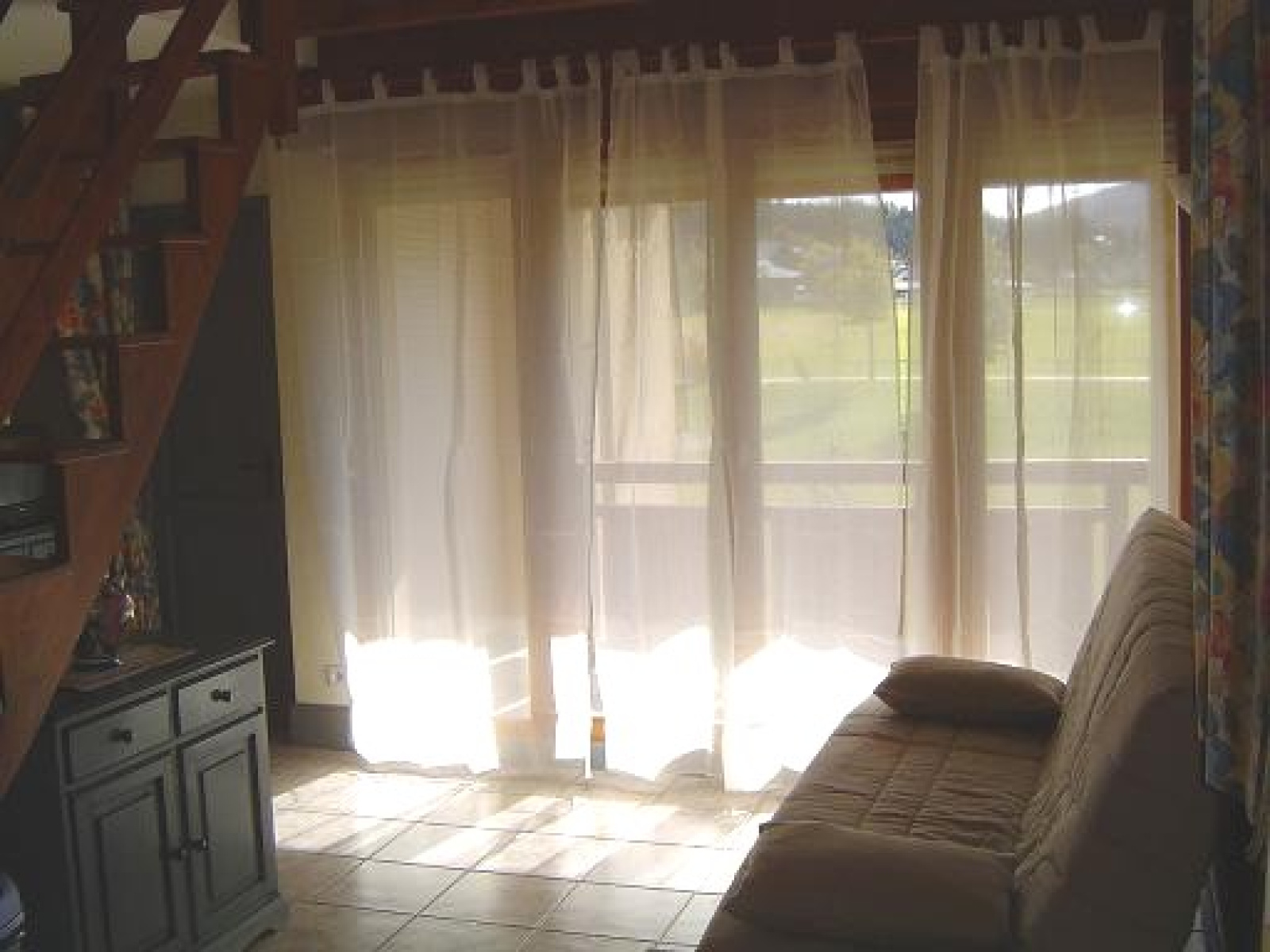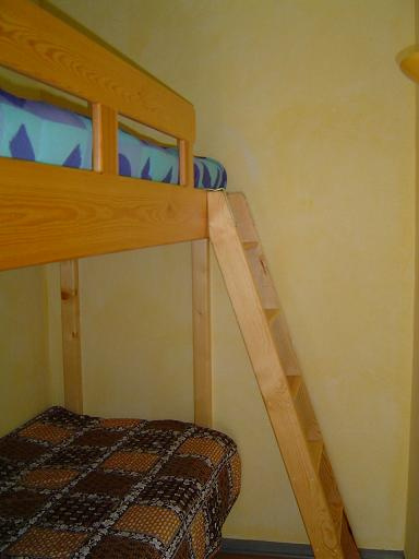 * 1 hall d'entrée, 1 wc, 1 salle de bain, 1 cabine avec 2 lits superposés (0.80 cms), 1 chambre avec 1 lit 2 personnes (1.40 cms), 1 séjour/salon avec télévision et balcon Sud, 1 coin cuisine avec lave vaisselle.
