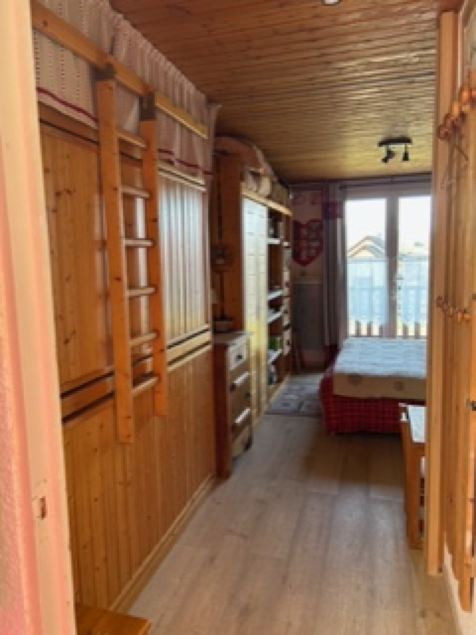 Entrée, Séjour/coin cuisine équipé, Coin salon, 1 chambre (lit double), 1 coin nuit (2 lits simples superposés), 1 salle d'eau/WC, 1 WC indépendant.