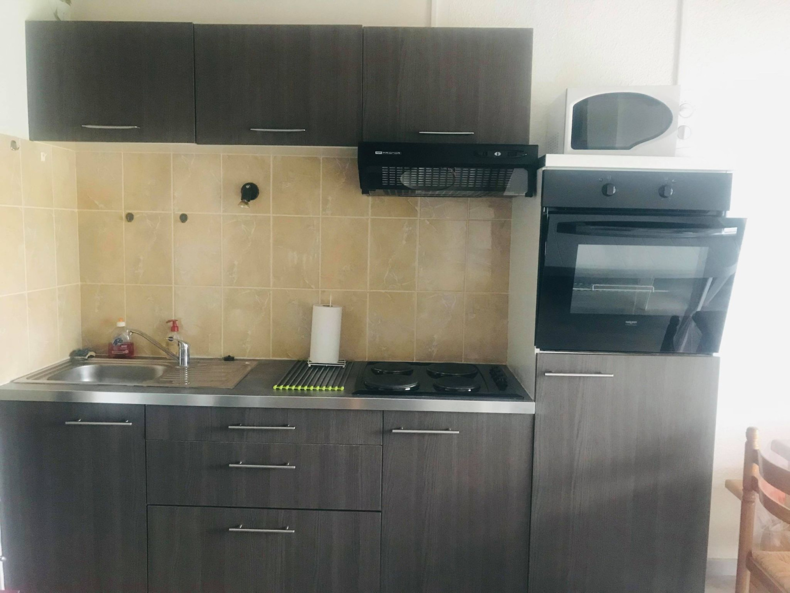 * 1 hall d'entrée avec placard, 1 séjour/salon avec 1 canapé convertible (1.40 cms) 2 personnes, 1 coin cuisine, 1 wc salle d'eau. Etage/Mezzanine : 1 lit 2 personnes (1.40 cms), 1 lit 1 personne (0.80 cms).
