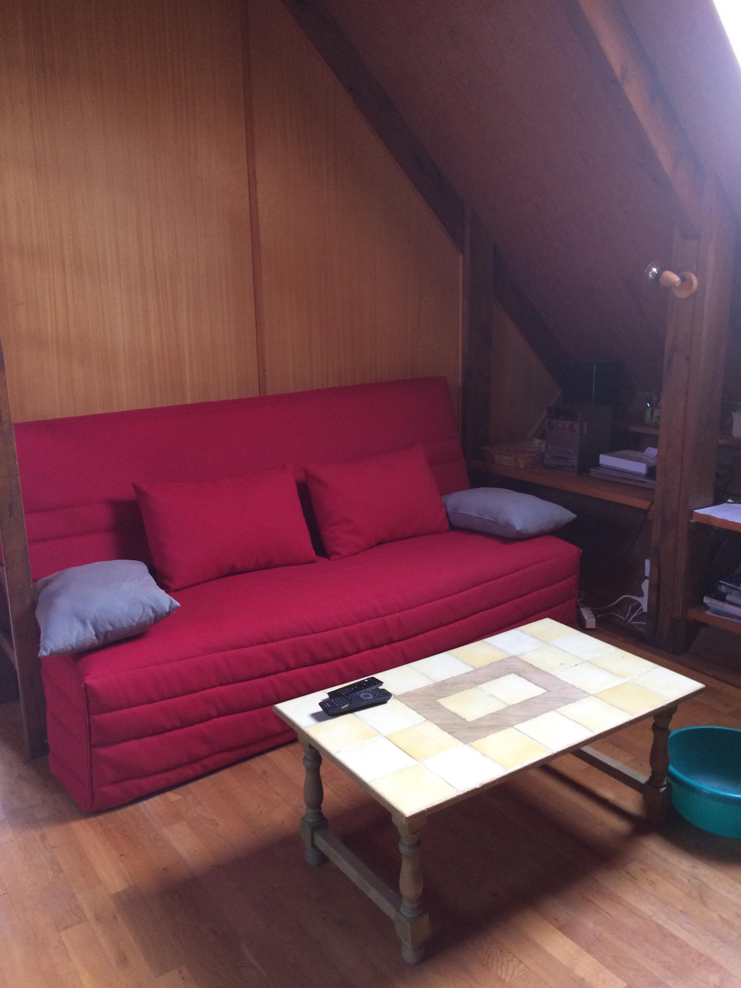 1 chambre avec 1 lit 2 personnes (1.40 cms), 1 wc, et 1 placard