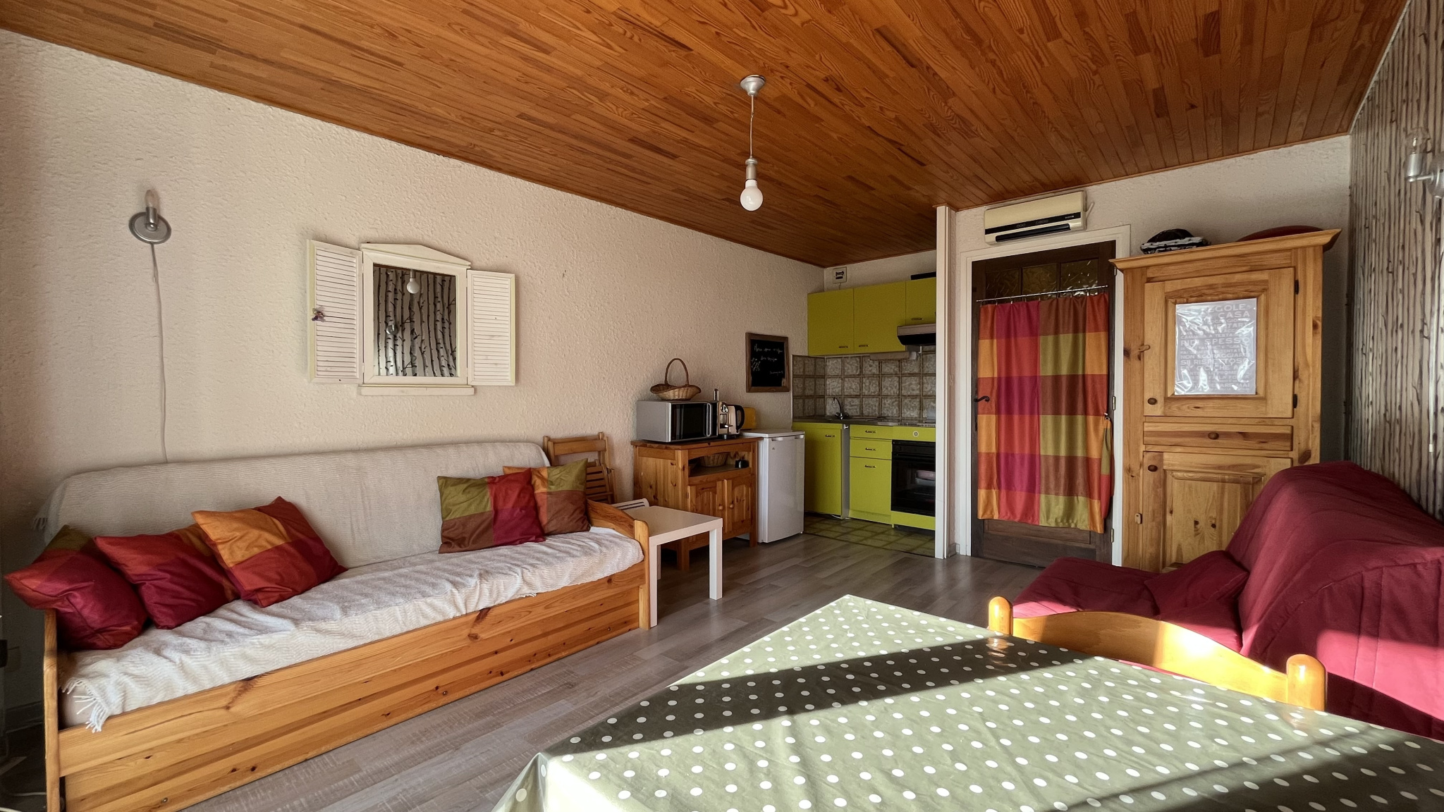 Idéalement situé à proximité immédiate du centre du village, au sein d’une petite copropriété, ce studio cabine exposé plein Sud bénéficie d’une belle luminosité.