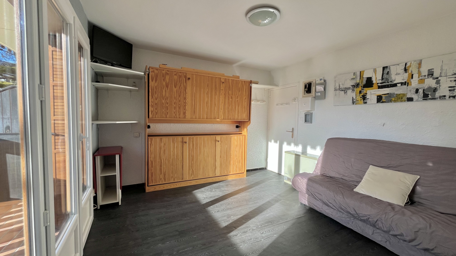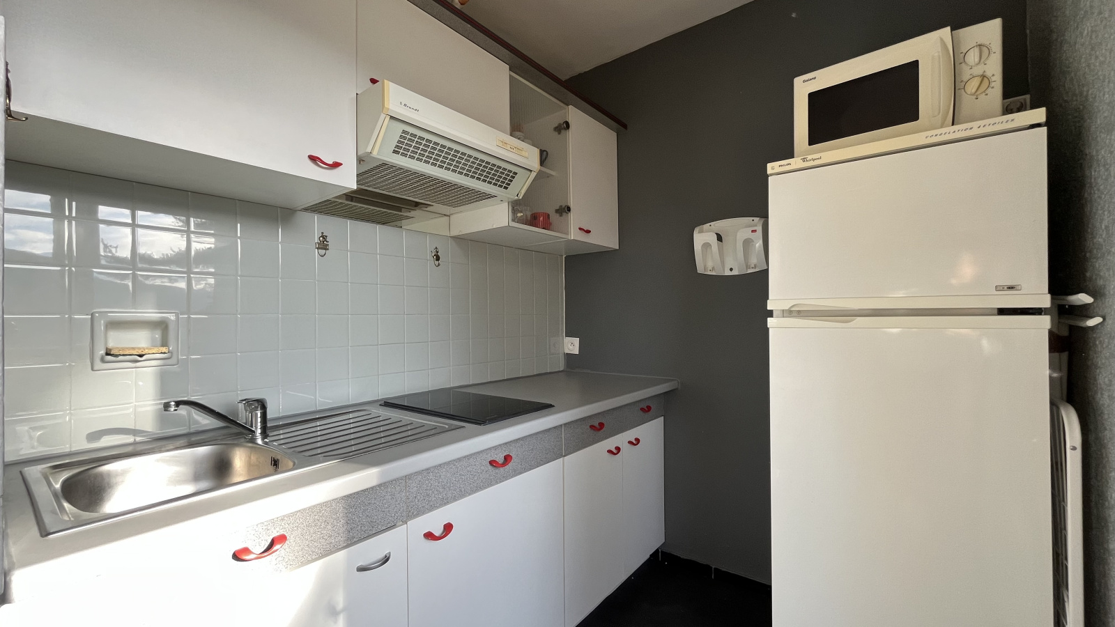 Dès l’entrée, sa pièce de vie est prolongée par un balcon exposé à l'ouest offrant une vue dégagée et sans vis-à-vis. Le coin cuisine est bien équipé. La salle d’eau avec WC complète l’ensemble.