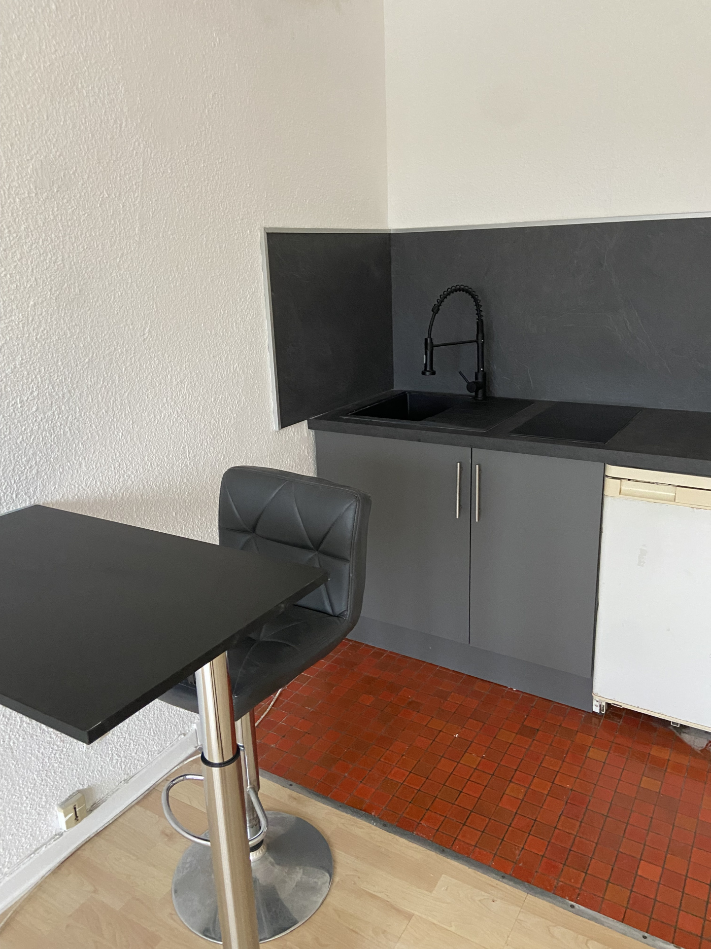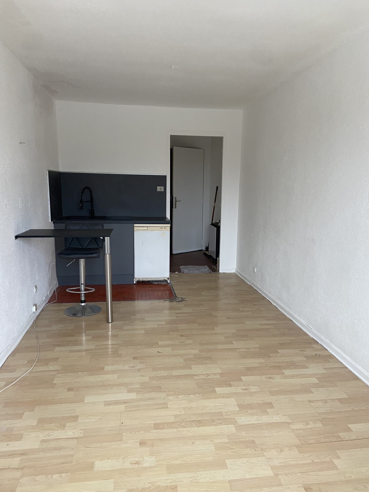 Studio partiellement rénové, en rez-de-jardin, composé d'une entrée, un séjour/coin cuisine, une salle d'eau/WC.